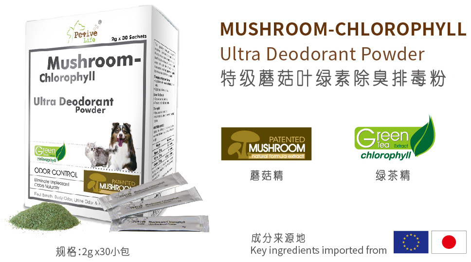 双孢蘑菇提取物 40mg, 绿茶提取物 20mg, 叶绿素粉 34mg